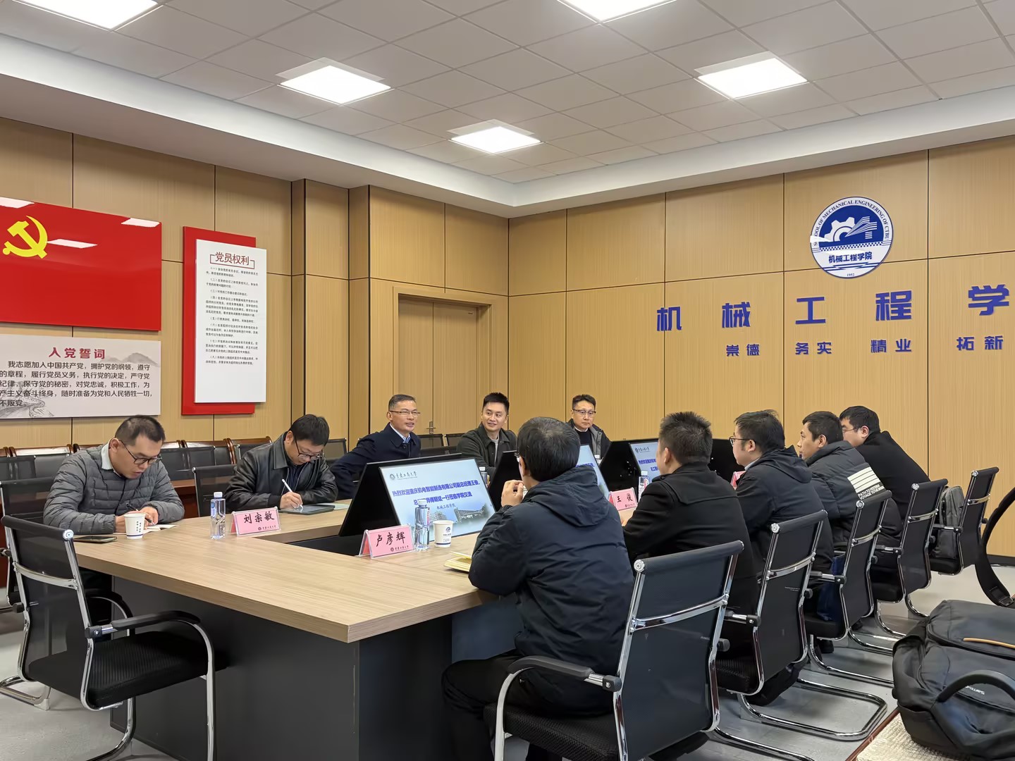 2026年3月18日下午,重庆机电智能制造有限公司副总经理王俊、总工程师傅朝斌一行到访太阳集团tcy8722,就深化产学研合作等事宜进行交流洽谈。国家卓越工程师李先广教授,太阳集团tcy8722副院长杨帅、谢俊等陪同接待。