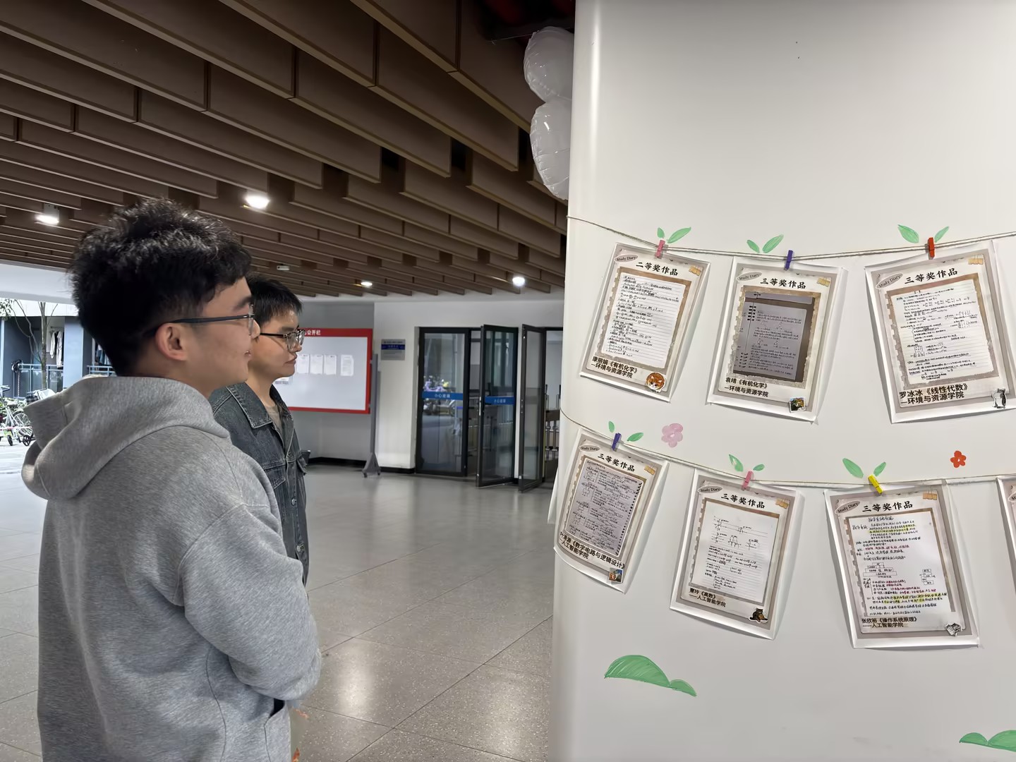 为持续发挥优秀榜样的示范引领作用,匠馨社区选取了部分获奖笔记在社区公共区域进行集中展示。一批字迹工整、逻辑清晰、内容详实的优秀笔记吸引了众多同学驻足学习,营造了“比学赶超”的浓厚学习氛围。
