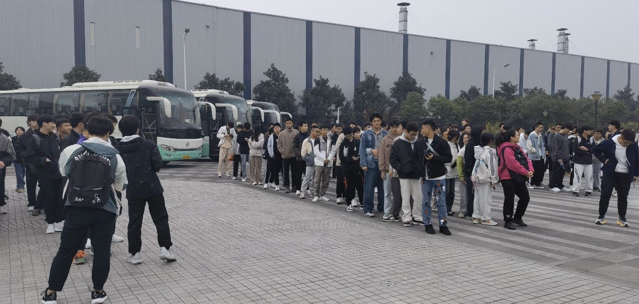 本次认知实习与长安汽车合作,师生共计一百四十余人乘车前往长安汽车两江工厂二厂区,深入长安汽车总装车间及其全球研发中心进行参观学习。