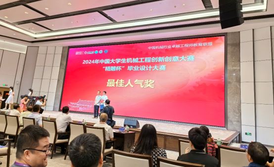 据悉,“精雕杯”毕业设计大赛于2022年被列入“中国大学生机械工程创新创意大赛”并进入全国普通高校学科竞赛排行榜,大赛所具有的导向性、示范性,为高校学生提供了碰撞创新思维、交流实践经验、相互学习促进的平台。我院学子在比赛中获奖展示了学院面向“新工科”改革取得的育人成效。