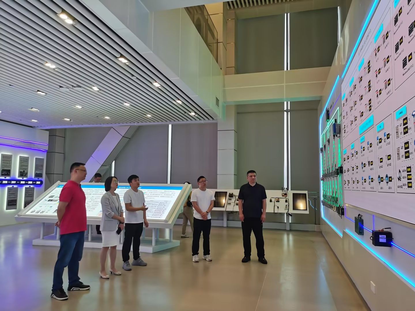重庆邮电大学工业互联网现代产业学院党委副书记邓安平详细介绍了重庆市第二批党建工作标杆院系建设情况,双方就深入实施党建工程推进学院事业发展各项工作展开交流。随后,邓安平带领大家先后参观了工业互联网实景式技术实验大场景和浸入式智能汽车创新体验大平台、自助图书馆、工业互联网与智能制造俱乐部、科技竞赛特训营、工业互联网与智能制造创新应用体验中心,“校-园-企”协同构建实景式技术实验大场景和浸入式创新体验大平台。