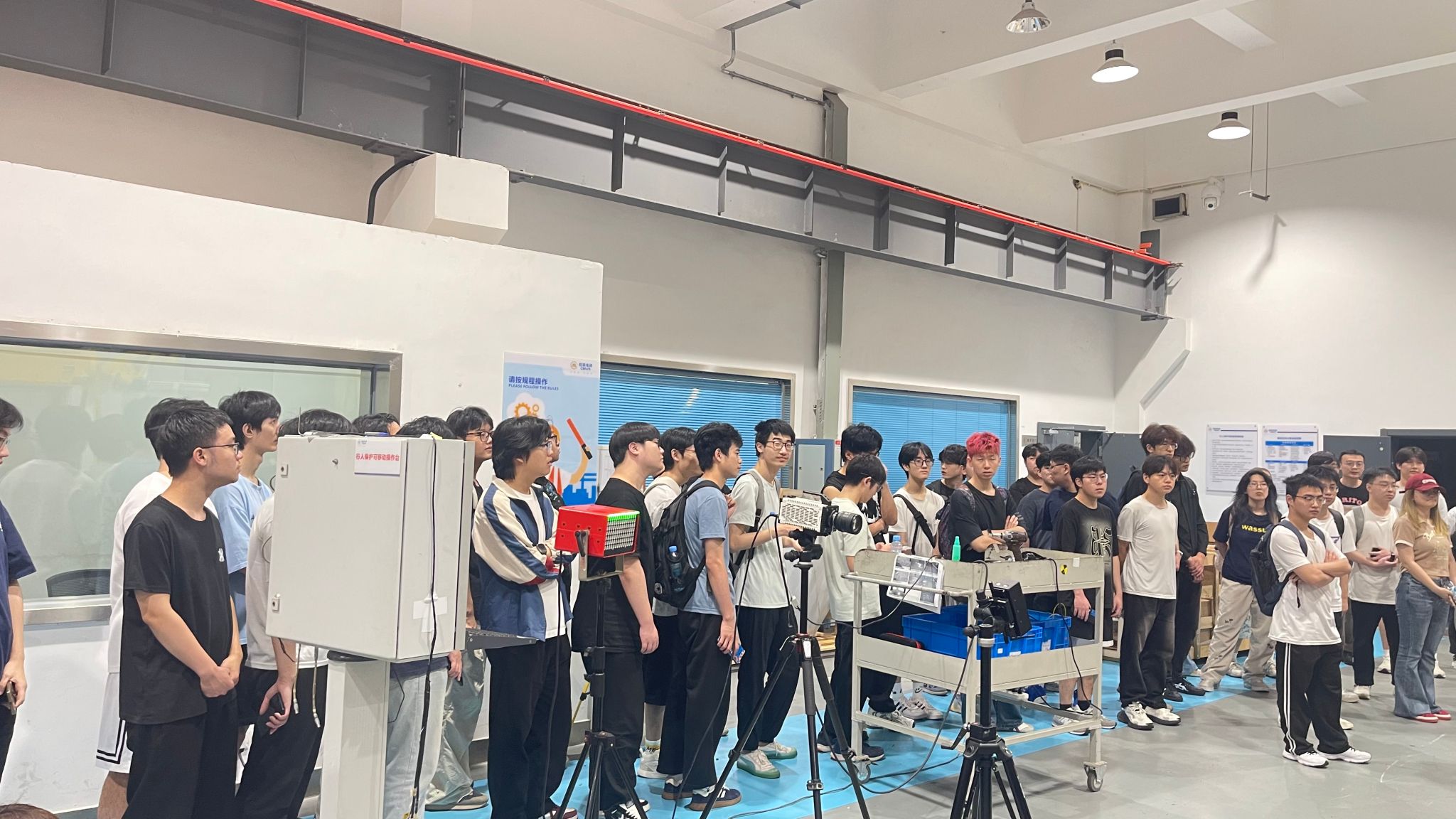 在招商车研金凤基地,同学们先后参观了碰撞大厅和试验场地,并亲自动手组装了GST假车、调试配置了V2X测试设备。工程师们通过现场演示与理论讲解等方式,向学生讲解了智能座舱人机交互试验、驾驶员状态监测试验、车载以太网试验、电磁兼容试验、车载紧急呼叫系统试验等各种测试试验的原理和具体操作实施方法。