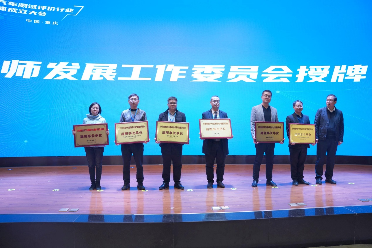 12月15日,全国智能网联汽车测试评价行业产教融合共同体成立大会在重庆工业职业技术学院举行。此次大会汇聚了23所普通高等学校、9家行业机构组织、48家上下游企业、50所高职院校(含职业本科)以及10所中职和2家人力资源公司,共计142家成员单位,共同致力于推动智能网联汽车测试评价行业的人才培养及持续发展。该共同体由中国汽车工程研究院股份有限公司、同济大学、重庆工业职业技术学院联合牵头发起,设有理事长单位、副理事长单位和理事单位。我校作为副理事长单位,是教师发展工作委员会成员单位,将主要参与师资/职工队伍培养体系设计、师资/职工培训项目实施、监测评估能力效果,提升教师/职工的教学能力和专业素质等工作的规划与实施。