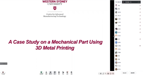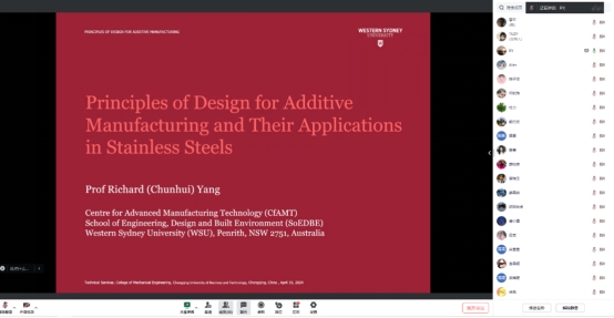 4月19日下午,澳大利亚西悉尼大学杨春晖教授应邀为我院师生作题为《3D金属打印与增材制造》的线上学术讲座。会议由太阳集团tcy8722院长杜力主持,副院长李平及60余名研究生参加。