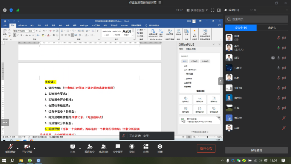 机自系系主任谢俊介绍了机械设计制造及其自动化专业在认证工作方面的工作安排及注意事项。重点从课程目标与能力目标的匹配、课程目标达成情况分析、教学大纲修订、附件材料准备等方面细致地介绍了相关工作要求,并结合专业核心课程举例进行了详细解读。随后,与会人员围绕课程达成度计算、支撑材料提交、课程大纲修订要求、持续改进中的现实困境等相关问题开展了激烈的讨论,充分发表意见和建议,并最后达成了一致意见。