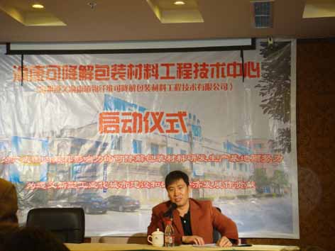 在贵州省、遵义市各级政府部门的推动下,由我校与遵义市大康绿色产品有限公司联合组建的“贵州遵义渝康可降解包装材料工程技术中心”,于2008年10月26日上午,在遵义大世界酒店举行了隆重的启动仪式。