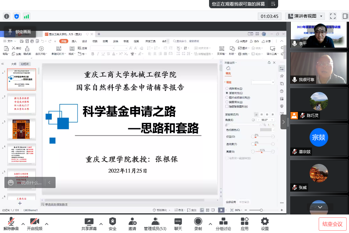 与会老师纷纷表示,通过本次培训会系统性地学习了基金申请书的撰写方法和技巧,提升了基金申报信心,力争在2023年国家自然科学基金项目申报上取得新的突破。