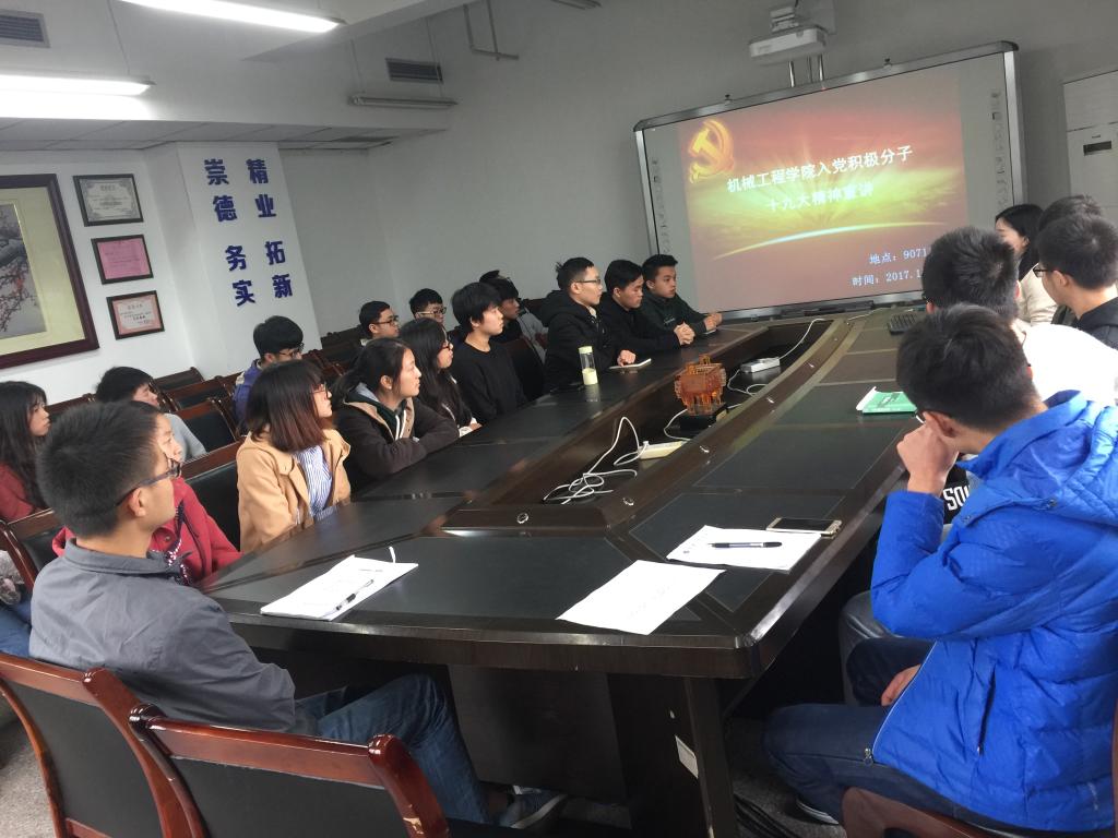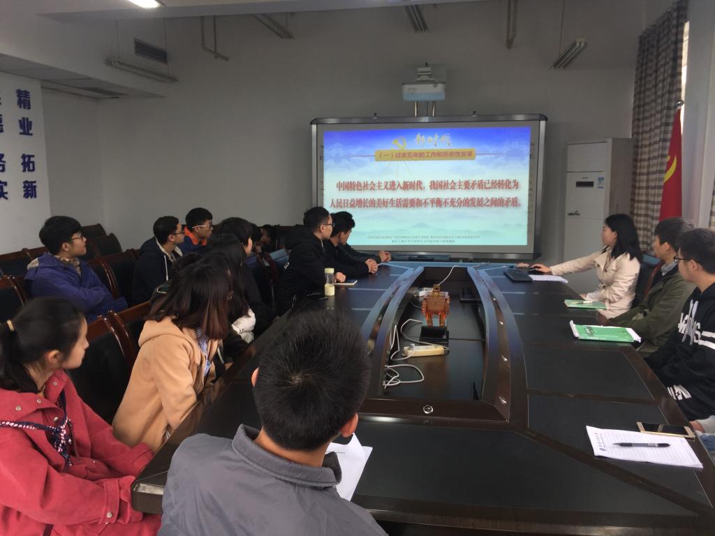 按照学校的要求和学院的安排部署,11月27日中午12点半,太阳集团tcy8722在慧智楼90711会议室召开了入党积极分子学习党的十九大精神报告会。报告会由学生二支部书记向巧主持。28名本学期新发展的入党积极分子参加了会议。