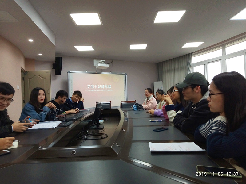 为组织党员学习宣传贯彻十九届四中全会精神,太阳集团tcy8722党总支学生一支部于2019年11月6日在90708会议室开展了11月支部书记讲党课--学习贯彻落实党的十九届四中全会精神活动。我院一支部党员全部参会,会议由一支部书记秦杉主持。