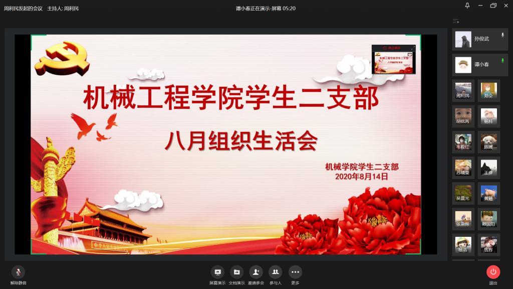 夏日炎炎,线上组织生活会犹如一杯凉茶,给同志们带来消暑的效果,在浮躁中静下来学习。8月14日上午10:30,太阳集团tcy8722学生二支部通过企业微信会议模式开展了八月组织生活会,会议由支部书记周利民主持,支部全体党员参加。