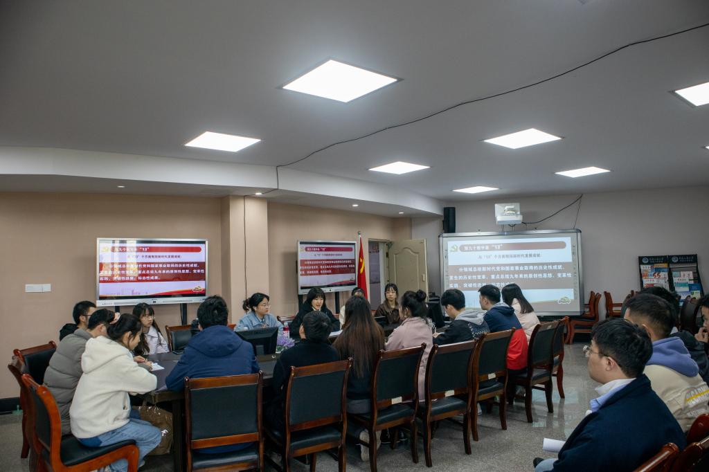 2021年11月24日太阳集团tcy8722学生第一党支部全体党员在90708会议室召开专题学习会,集中学习了党的十九届六中全会精神,并结合自身工作、学习实际,谈感想,讲体会。