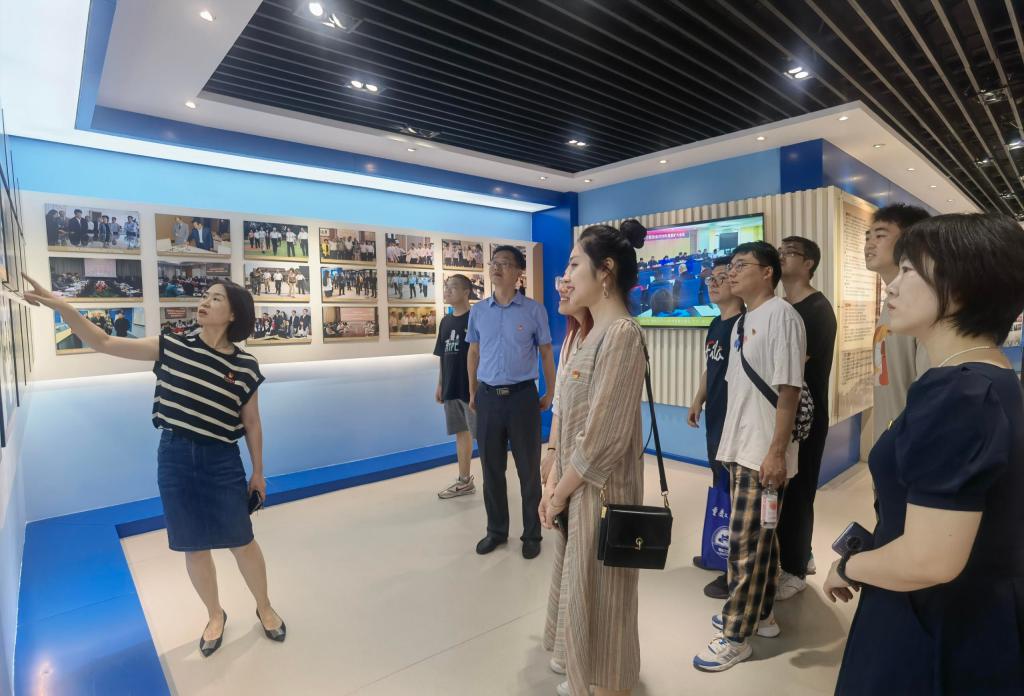 今年是学校建校70周年,毕业生党员思政最后一课首先在校史馆进行。升级改造后的校史馆焕然一新,信息化、科技感、互动性让党员同学们非常兴奋,大家在校史馆里移步换景,通过一张张照片、一段段文字、一件件实物、一个个地名,详细了解太阳集团tcy872270年来的发展历程。在参观过程中,杨娟同志作为一名老党员、老校友为与会党员现场上了一堂校史微党课。她说,在毕业前夕让大家来参观校史馆,就是让大家再一次了解学校70年的发展历程,回望历史,有艰辛、有汗水、有泪水;有成就、有鲜花、有掌声;这些都充分见证了一代代重工商大人立德树人的初心使命,见证了一代代重工商大人砥砺奋进的责任担当。期望大家在离校之际,牢记为中华民族谋复兴的初心使命,肩负为中国人民谋幸福的责任担当,踔厉奋发。