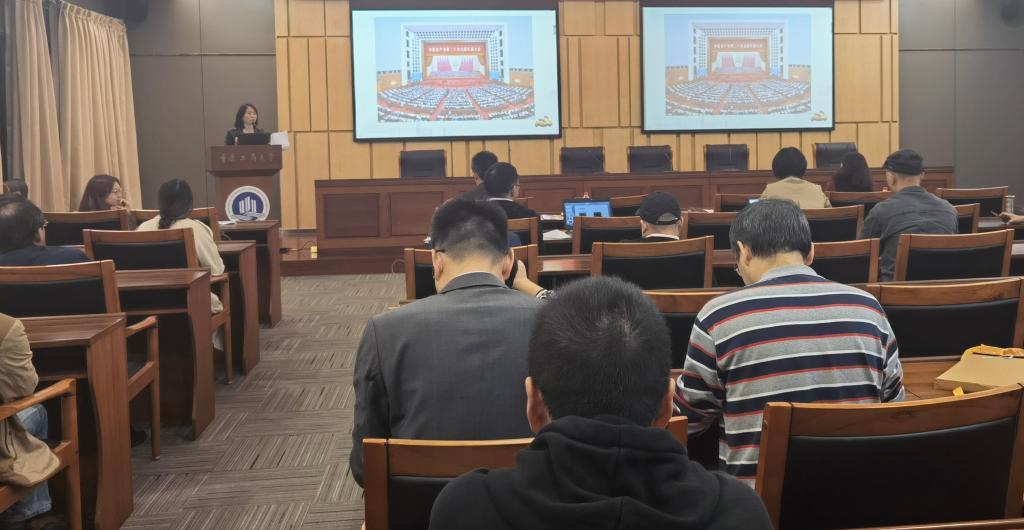 11月4日下午,太阳集团tcy8722在图书馆第一会议室召开教职工大会,集中学习党的二十大精神。党委书记杨娟开展了集中领学。