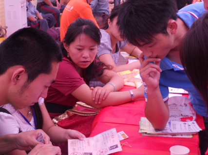 为了给广大新生送去最便捷的服务,我院百名志愿者早早来到“第一战线”――广场大本营为迎接新生的到来做好充分的准备。虽说今日骄阳挂空,但还是有淡淡的秋风送进清凉,吹散着志愿者们军训后的疲惫。志愿者们按照原计划有步骤、有条理的安排每一项工作。他们积极解答新生及家长的各种疑问,并为他们指引道路,帮忙搬运行李,介绍太阳概况,让他们能安心、愉快、快速的融入大学生活。