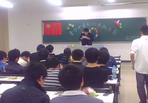10月20日,09级机制三班在90407开展了以“青春中国心,心系钓鱼岛”为主题的团组织活动,辅导员张春媚老师和09机制三班全体同学参与了这次活动。