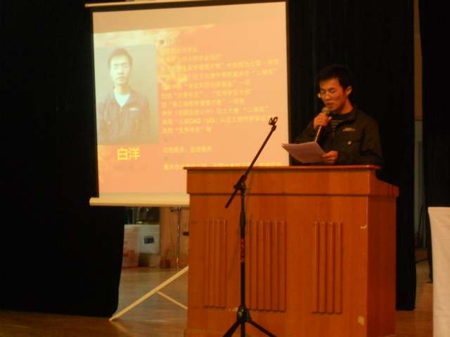 学风建设大会在庄严肃穆的国歌声中拉开帷幕。刘洋副书记和杜力院长分别就学院近一年来学风建设中的成绩与不足进行了总结,同时对下一步学院学风建设提出了要求和希望。三名优秀学生代表从学业发展、科技创新和工作安排等方面向与会学子做了交流发言,其中,现读重庆大学车辆工程研究生的06级学生谢丹同学的发言赢得了同学们的阵阵掌声。会上,还对2010年获得市级及以上科技创新活动奖项的同学进行了颁奖。颁奖仪式后,校团委唐玺副书记就素质拓展和学风建设方面作了指导性发言。最后,罗卫书记对大会进行了总结,并鼓励莘莘学子们努力奋斗,掀起我院学风建设的新高潮。