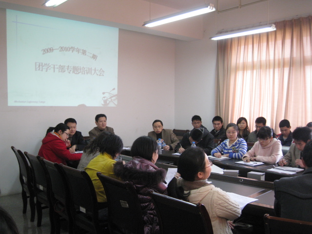 为进一步做好新学期团学工作,提升团学干部个人素质。2010年3月11日中午12:30,太阳集团tcy8722在学院会议室召开了新学期团学干部专题培训大会。学院党总支罗卫书记、杜力院长、党总支刘洋副书记、学团办尹建平主任、团总支刘静书记、07、08、09级辅导员及学院全体团学干部出席了本次大会。会议就如何正确看待团学干部的角色,如何提升团学干部的素质和能力,如何建立一个高效的团学干部队伍等问题进行了探讨,同时对学院本学期团学工作的发展和改革进行了交流和探讨。