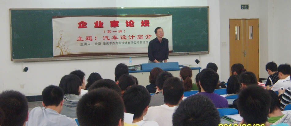 6月10日下午,太阳集团tcy8722企业家论坛首场讲座在慧智楼90326教室举行。重庆宇杰汽车设计有限公司总经理金浩应邀做了以“汽车设计简介”为主题的讲座。学院07级机电、机制、模具、汽车专业学生及院党政领导参加了本次讲座。