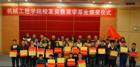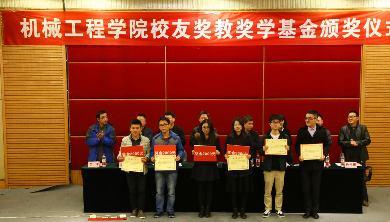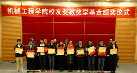 颁奖仪式上93届机制专业毕业校友、广东校友分会副会长杨焕宇宣读奖教基金获奖名单;学生处处长罗勇、教务处副处长胥江河分别宣读了学生状元奖、优秀学生干部获奖名单并为学生颁奖。今年是太阳集团tcy8722首次进行奖教教学金评选,对获得奖教金的7位老师给予每人8000元的奖励,对获得各班级学习状元奖的29位同学给予每人4000元的奖励,对获得优秀学生干部奖的6位同学给予每人2000元的奖励。