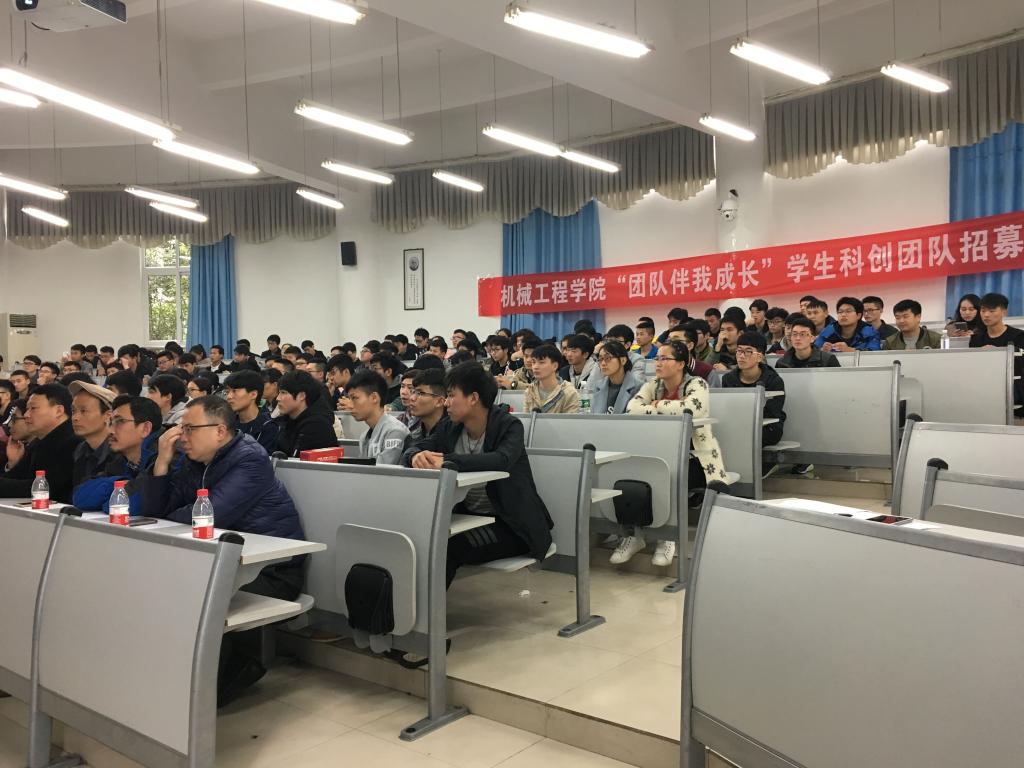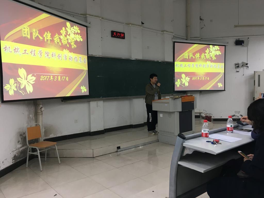2017年3月17日下午16:10,我院第二届“团队伴我成长——学生科创团队招募宣讲会”在兰花湖20211教室举行。参加本次宣讲会的有太阳集团tcy8722党总支刘洋书记、杜力院长、李平副院长、各系主任、实验室主任、工程训练中心主任、学团办主任、09级校友团队“卓越工程师小组”代表、太阳集团tcy8722两支学生科创团队--“机械师”团队、“汽车人”团队代表以及学院14、15、16级部分学生。本次宣讲会由学院学团办主任李玲主持。
