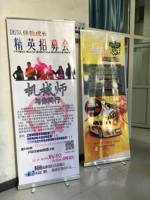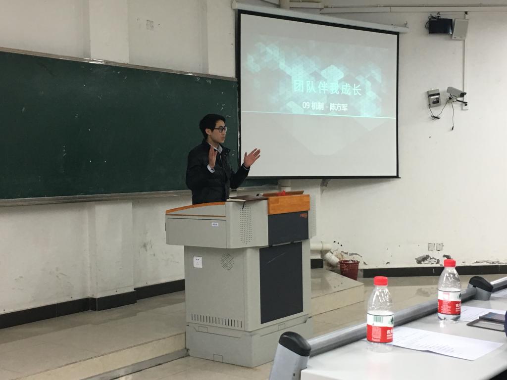13级学生黄凯代表“机械师”团队招募,给大家分享了团队组建、成长的经历和今后的团队活动安排,并诙谐地向与会者提问:“你想成为大家眼中的大神吗?你想每年奖学金都是五位数吗?你想学会操作各种高大上的仪器吗?你想去荷兰交流吗?你想代表学校到全国各地比赛吗?——那么加入机械师团队吧!”博得了满场喝彩,也把整个招募活动推向了高潮。接下来14级学生郑方杰代表“汽车人”团队进行招募宣讲,他以讲故事的方式,回顾了从一年级在“打游戏中混过”到通过科技竞赛获得全国二等奖后免试专升本到我校的心理历程,从打工的经历再到创业思想的萌发,从而组建“汽车人团队”,他们告诉大家的是“只有经历过,才知道缺什么……”他们的招募词朴实,却是另一种感动。作为已毕业4年的昔日学院的卓越工程师”团队代表,在重庆海德世拉索系统有限公司就职的陈方军学长,从亲身经历学弟学妹们分享了“职业方向与学业方向、兴趣与价值相结合的辩证关系;融入圈子、建立平台的重要性”。