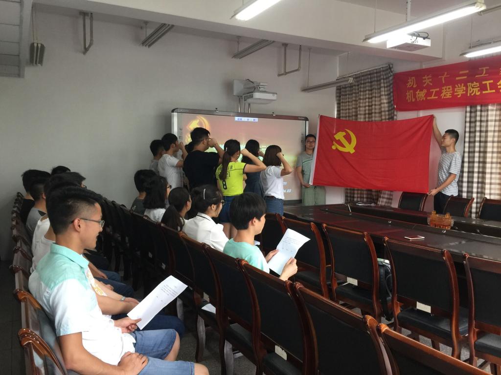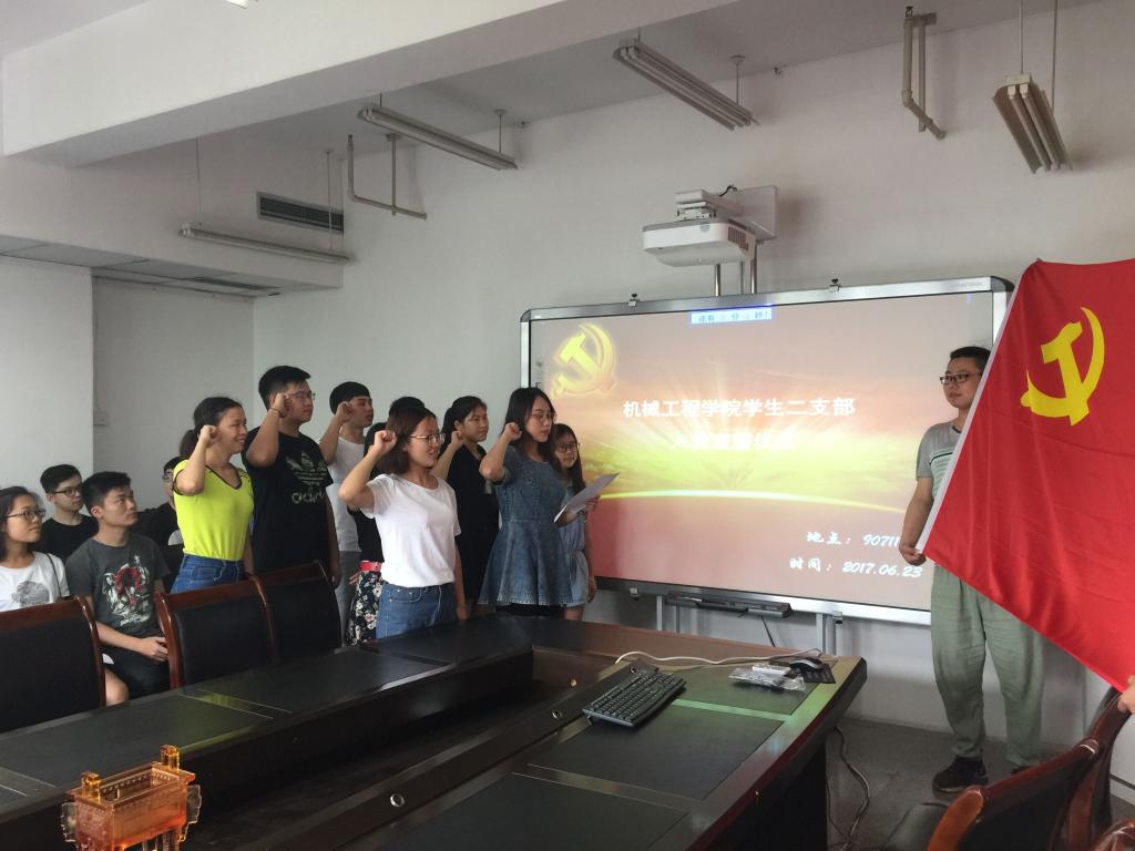 太阳集团tcy8722学生二支部于2017年6月23日在慧智楼90711举行了“新党员入党宣誓活动”。9名新党员在唐铭雪同志的领誓和支部书记向巧的监誓下庄严的完成了入党宣誓仪式。通过此次活动,进一步激发了广大党员的荣誉感、责任感和使命感,激励新党员同志积极投身学校改革、建设和发展中,努力争做合格党员。