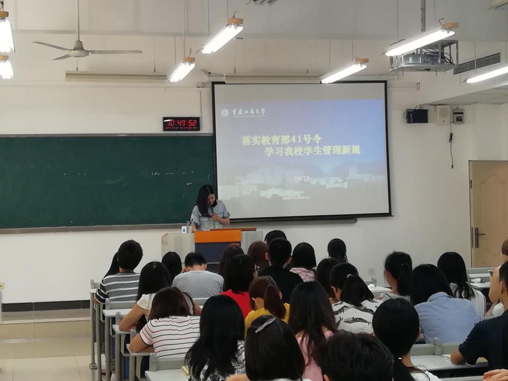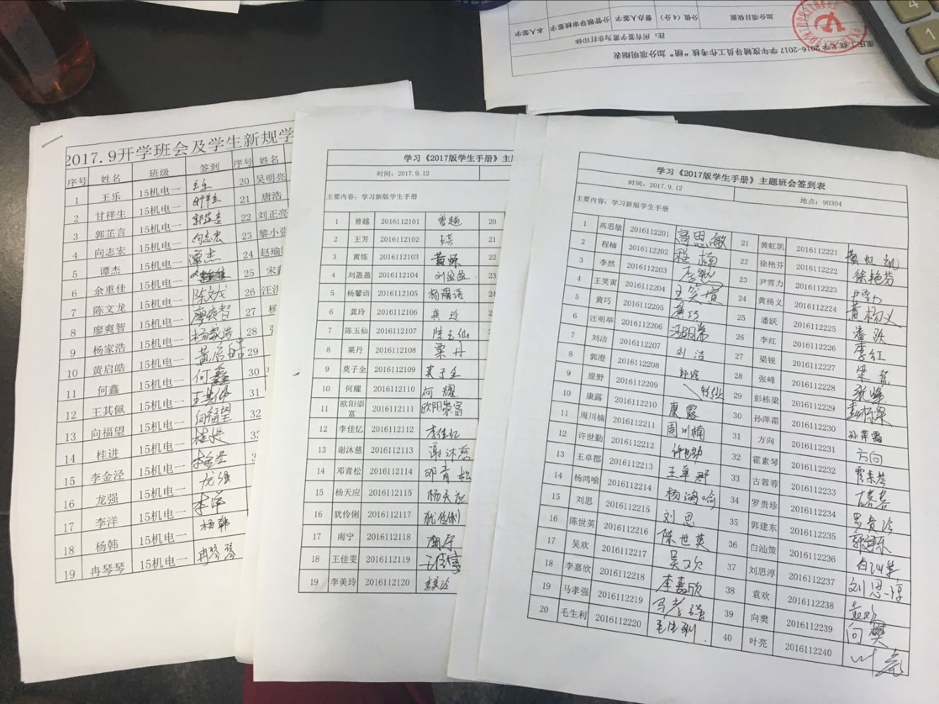 9月4日起,太阳集团tcy87223个年级4个专业30个班级,分别在辅导员老师的指导下,开展了学习2017新版《学生手册》主题班会。