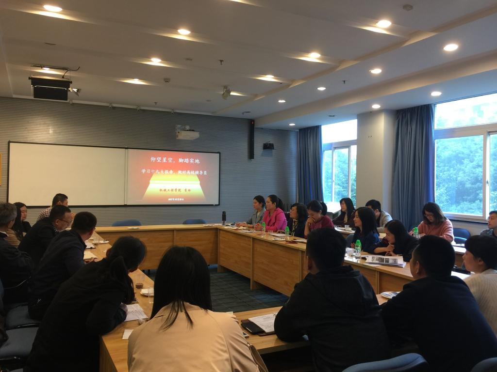 接着,参会老师们针对如何将“十九大”精神结合到自己的实际工作中?辅导员如何进行自我提升?辅导员如何有效开展科学研究?辅导员如何提高自己的工作效率与职业技能?非思政专业辅导员如何加强理论学习?等问题展开讨论,分享了自己在实践工作中的宝贵经验,为学生工作有效开展和辅导员队伍建设建言献策。大家纷纷表示,辅导员的“获得感”和“幸福感”来源于与学生共同成长的每一天,“青年兴则国家兴,青年强则国家强”,作为青年教师,我们应该肩负起党和国家赋予我们的神圣使命,帮助青年学生努力成为有理想、有追求、有担当、有作为、有品质、有修养的新时代的大好青年。