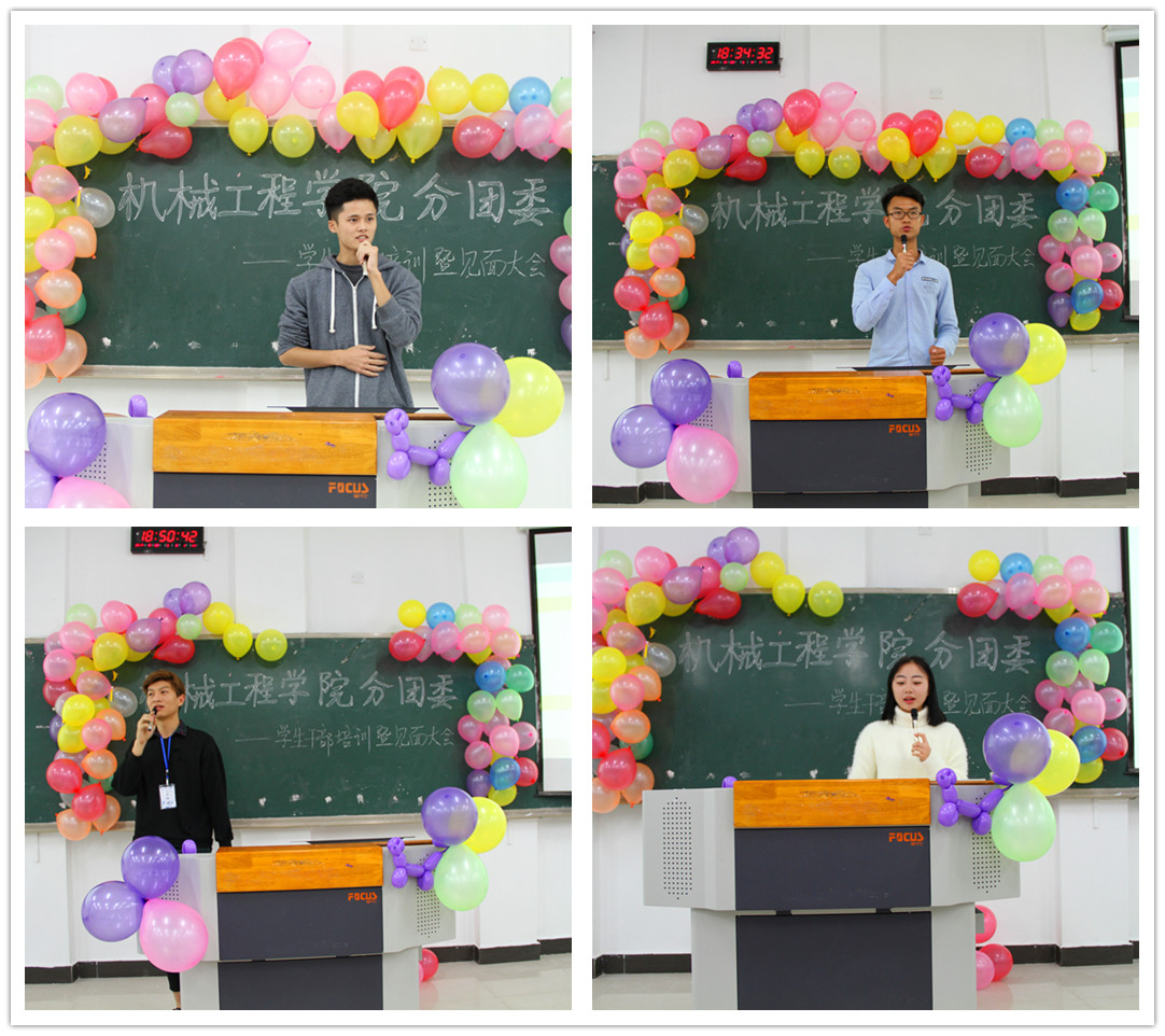 随后计信学院王瑞、我院学生会办公室主任付子城、副主席胡晓川及学生会宣传部部长谭建宏、陈佳洁,依次就PPT的创作、策划书和工作总结的撰写、建设思想礼仪,写新闻稿和拍照技巧进行了培训。最后学生会主席唐铭雪进行了总结发言。她呼吁学生干部要敢于担当,勇于奉献,希望大家处理好学习与工作的关系,并鼓励新加入的学生干事与学长、部长多沟通交流。