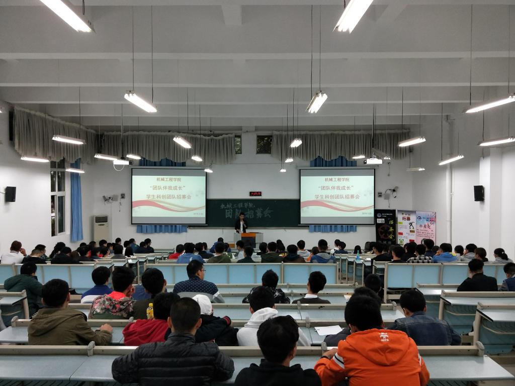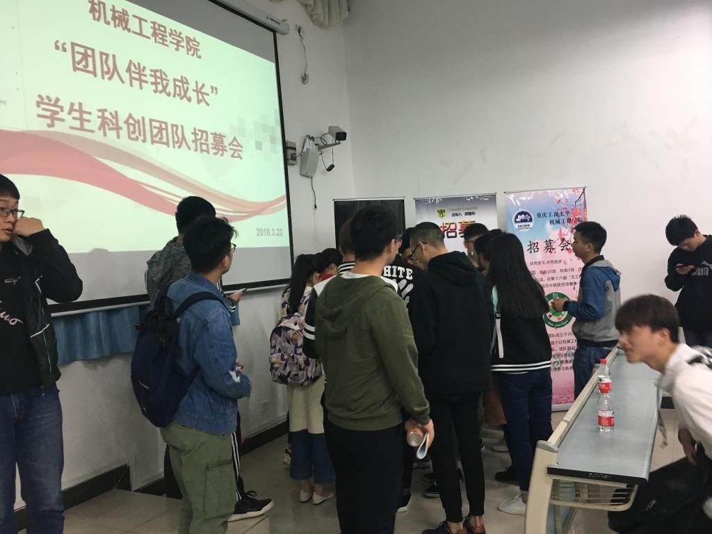 2018年3月23日,太阳集团tcy8722第三届“团队伴我成长”学生科创团队招募会在兰花湖校区20111教室成功举行,学院院长杜力教授、副院长李平教授、学团办负责人李玲老师、“机械师”、“汽车人”、“星包装”三个学生科创团队成员和太阳集团tcy87222017级新生参加了本次招募会。