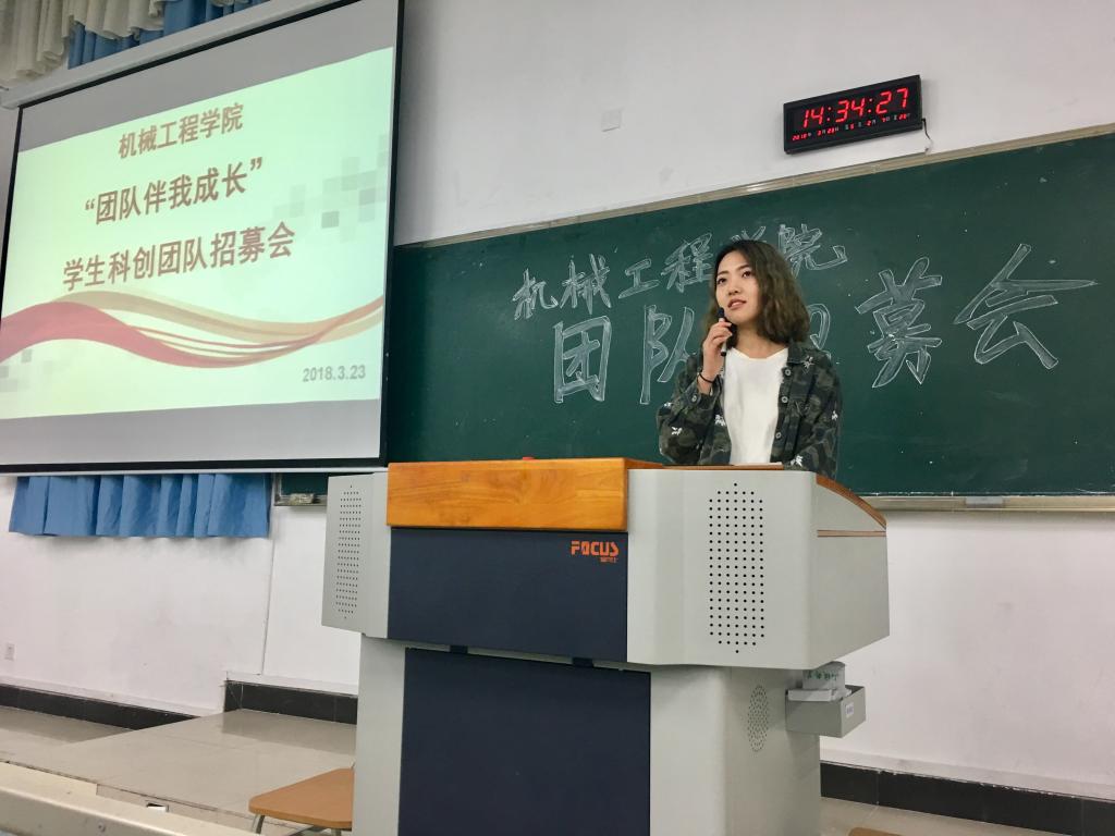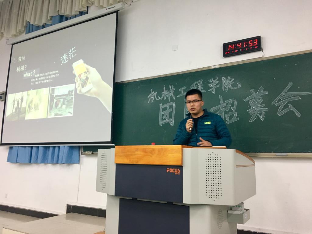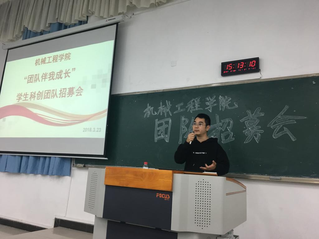 本次招募会主持人由2015级机制三班的张一博同学担任,他首先为大家简要介绍了学院三个学生科创团队的发展概况和目前所取得的一些成绩,鼓励2017级同学积极参加学生科创团队,与志同道合的同学们一起将大学生活规划得更加丰富多彩,全面提升自己的综合素质。