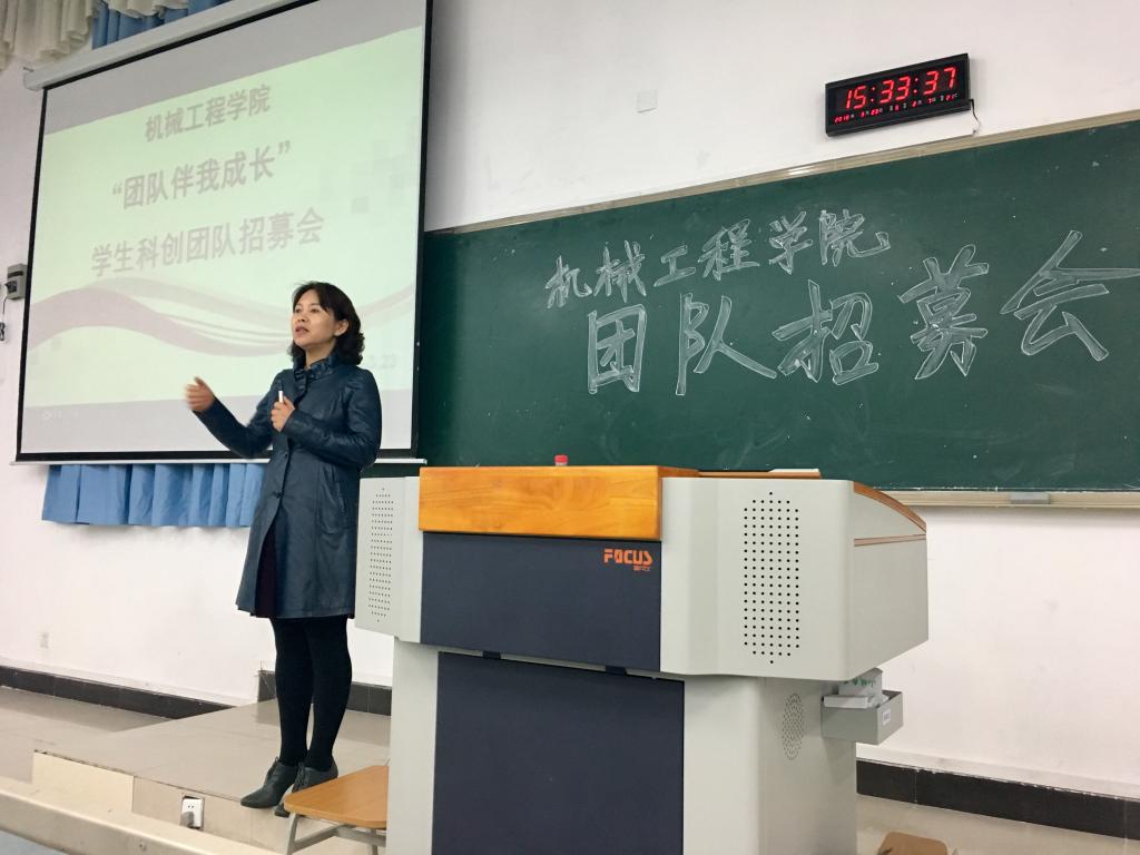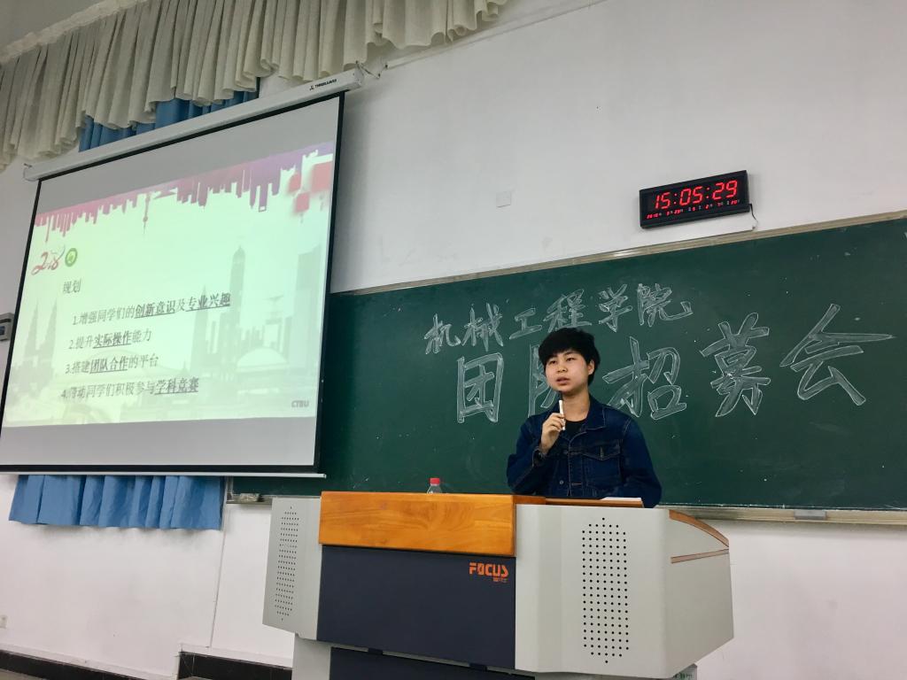 接着,“机械师”、“汽车人”、“星包装”三个学生科创团代表分别就自己的团队进行了招募宣讲。他们表示,招募低年级的同学参加科创团队,会更有效地利用课余生活,使他们在专业课学习、专业技能以及学科竞赛竞争力等方面中有较大的的提升,同时通过与团队成员的密切协作,也有效地锻炼自己的团队合作能力,提高个人的综合素质,还会收获到满满的友谊,呼吁17级的同学们抓住机会,积极参与,共同为了团队的建设和学院的发展贡献力量。