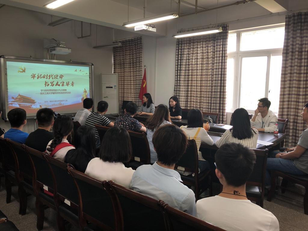 4月19日中午,根据学校的统一部署,太阳集团tcy8722优秀辅导员学习贯彻党的十九大精神宣讲会在慧智楼90711举行。辅导员向巧、袁娅婷分别作了宣讲报告,围绕如何准确深入地学习领会党的十九大精神作了全面系统的阐述。学院学生二支部全体党员聆听了两场精彩的报告。