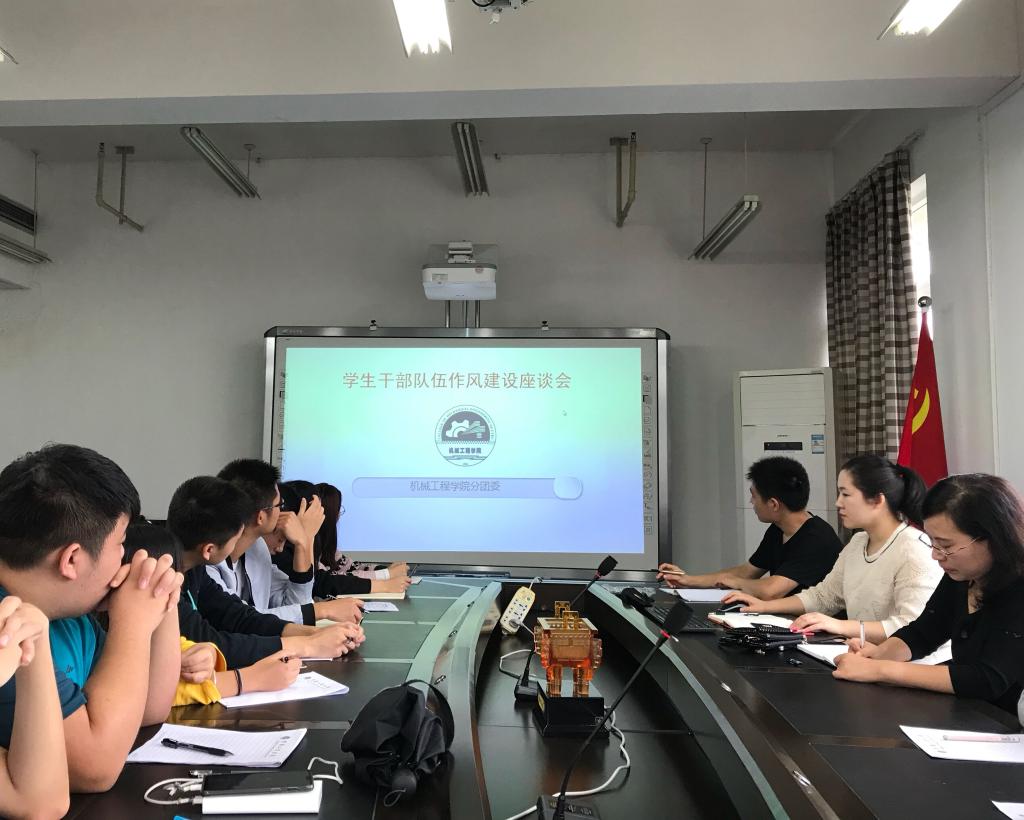 2018年9月18日中午,太阳集团tcy8722在90711召开了“学生干部作风建设”座谈会。学院党总支副书记张晓琴,学院分团委书记邢月军,学生组织主要学生干部参加了此次座谈会,会议由分团委书记邢月军。