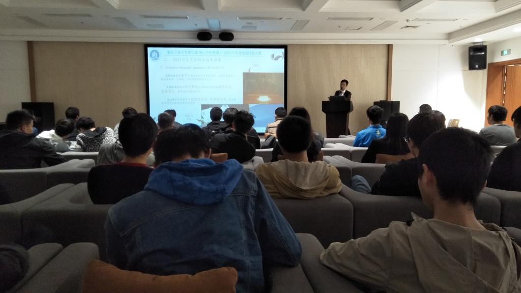 大会开始,吴振宏老师给同学们简单介绍了什么是3D打印技术,用一个简单直接的流程表描述了3D打印的发展历程。然后又介绍了几种3D打印工艺,也让同学们了解了3D打印的工作原理。之后,吴振宏老师用几个小视频举例3D打印在生活各方面的应用,让同学们知道3D打印可以有效的提高工作效率,解决医疗工业等方面的一些难题。在此之后,老师也举了生活中一些实例来告诉同学们3D打印具有两面性,给人们带来便利的同时未来也面临着很多挑战。老师通过视频展示了往年竞赛的优秀作品,并简单介绍了比赛规则和参赛相关事宜。最后老师通过有奖问答的方式,活跃了宣讲会的气氛,调动同学们思考和回答问题的积极性。至此,宣讲会圆满结束。
