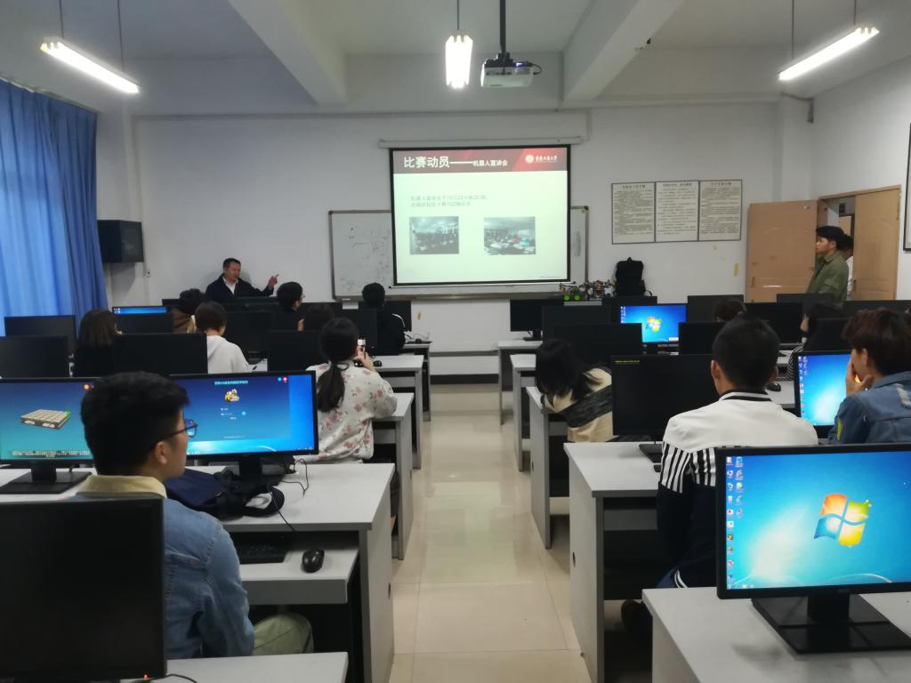 2018年10月19日14:00,在我校南岸校区十教218召开机器人大赛的宣讲会,出席此次宣讲会的嘉宾有王洪建老师和蒋昀赟老师和机械师团队。