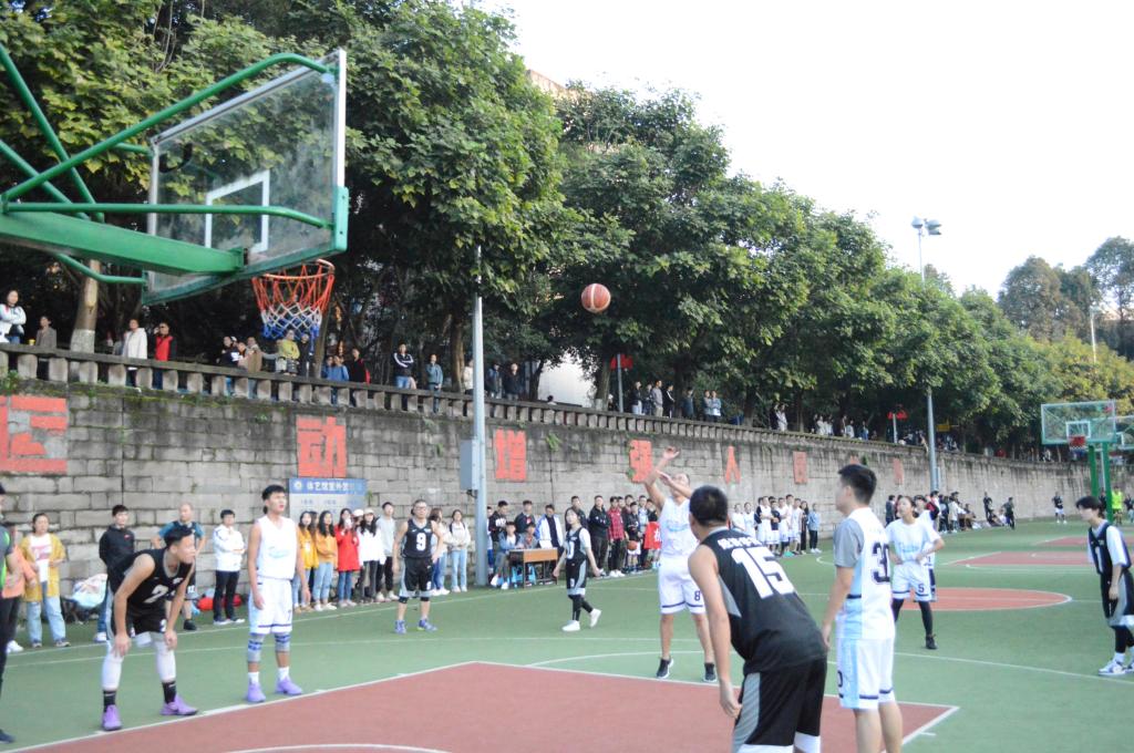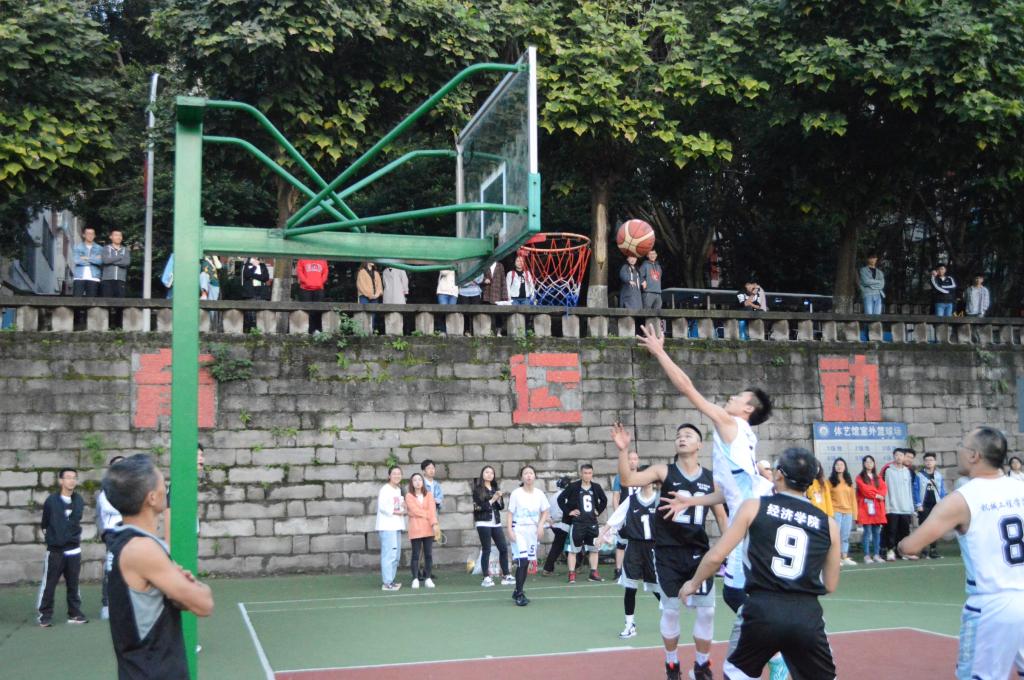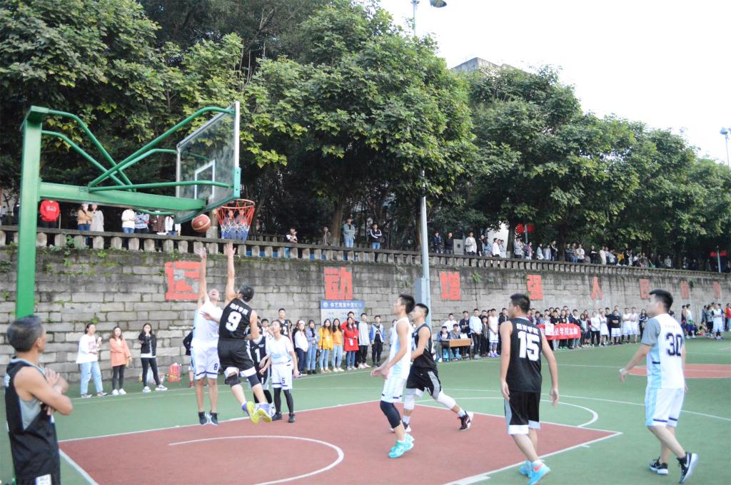 为加强高校校园体育文化建设,培养终身体育意识,营造良好的校园文化氛围以及全面推进素质教育。太阳集团tcy8722“师生杯”篮球赛于2019年10月29日17:40在南岸校区南区篮球场展开了四强赛,我院参赛老师田胜利、谢俊、张建恒、吴振宏、王旭东、梁强,参赛学生彭麒、张树林、杨杰、吴曜进、岑琳、刘媛媛、甘雨欣、雷雯婷等篮球队成员以及我院学生会全体成员共同参与到此次比赛中。