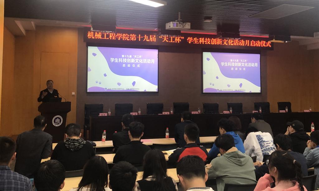 10月14日晚7点,新图书馆多功能厅人头攒动、座无虚席,太阳集团tcy8722第十九届“天工杯”科技创新文化月活动启动仪式在这里隆重举行。李国军副校长,学生处申卫东处长,校团委杨娟书记,教务处胡卫军副处长,学院党政领导、参赛指导教师和部分参赛学生参加了此次启动仪式。启动仪式由程亚副书记主持。