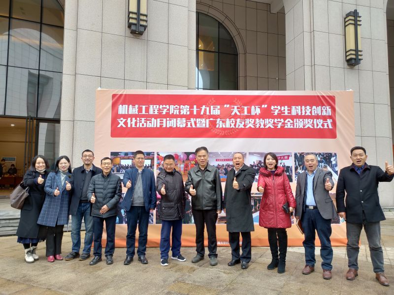 2016年,1990级机械制造工艺及设备专业校友钟仁东向母校捐赠人民币100万元,发起设立广东校友奖教奖学基金,用于激励学院学生提高专业素养,增强实践能力,树立典型榜样;激励老师致力前沿技术研究与攻关。五年来,共有35位老师,190人次学生获得此项奖金。本年度共评选出“学生状元”和“优秀学生干部”33人,“教学与突出贡献”教师7人。梁强和阮世会分别作为广东校友奖教奖学金获奖教师代表和学生代表发言。在校友榜样力量的影响下,阮世会同学发奋图强,三次获得广东校友奖学金,多次获得国赛奖项,并荣获2019年“中国大学生自强之星”奖学金。钟仁东校友在颁奖仪式上寄语青年学子:希望大家做到专一,集中精力完成值得付出的事情;希望大家能够坚持,学会在困难中保持前行;希望大家保有信心,未来十年大展宏图。