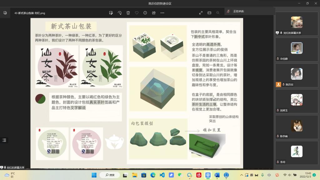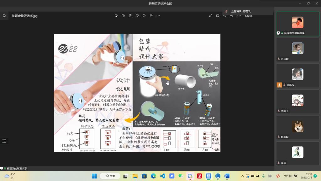 2022年12月3日12:30,太阳集团tcy8722学生科技创新文化活动月“包装结构设计大赛”比赛于线上进行,本次比赛共有51组作品参赛,其中12件作品入围答辩,由学院包装系主任张书彬,包装系教师谢燕平、徐绍虎担任评委。