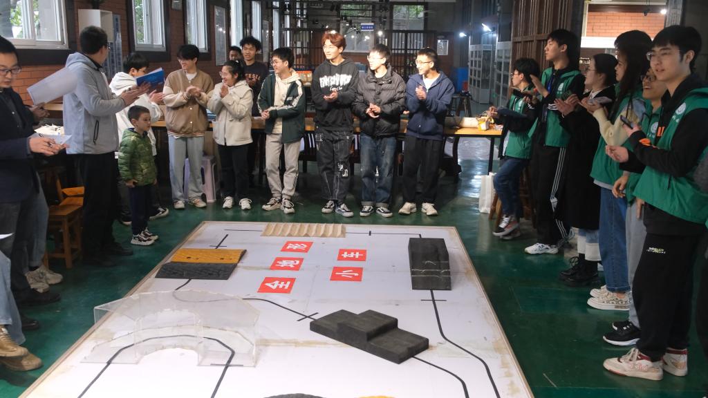 比赛开始,第一组的同学将小车放于赛道上,满心期待地看着它出发。只见小车在赛道上驰骋,面对障碍也能游刃有余。虽然过程中出现了些许意外,但好在有惊无险的跑完了全程。第二组同学设计的小车跟上面的同学比略胜一筹,全程的路线规划较为顺利。后面的同学们也不甘示弱,每一组都充分发挥了自己的能力。看着自己的小车在跑道上飞奔,无论是同学们还是老师都发自内心地感到高兴与满足,觉得自己的努力没有白费。最后,在同学们的不懈努力下,参加此次比赛的队伍都顺利通过赛道,为比赛画上了一个圆满的句号。