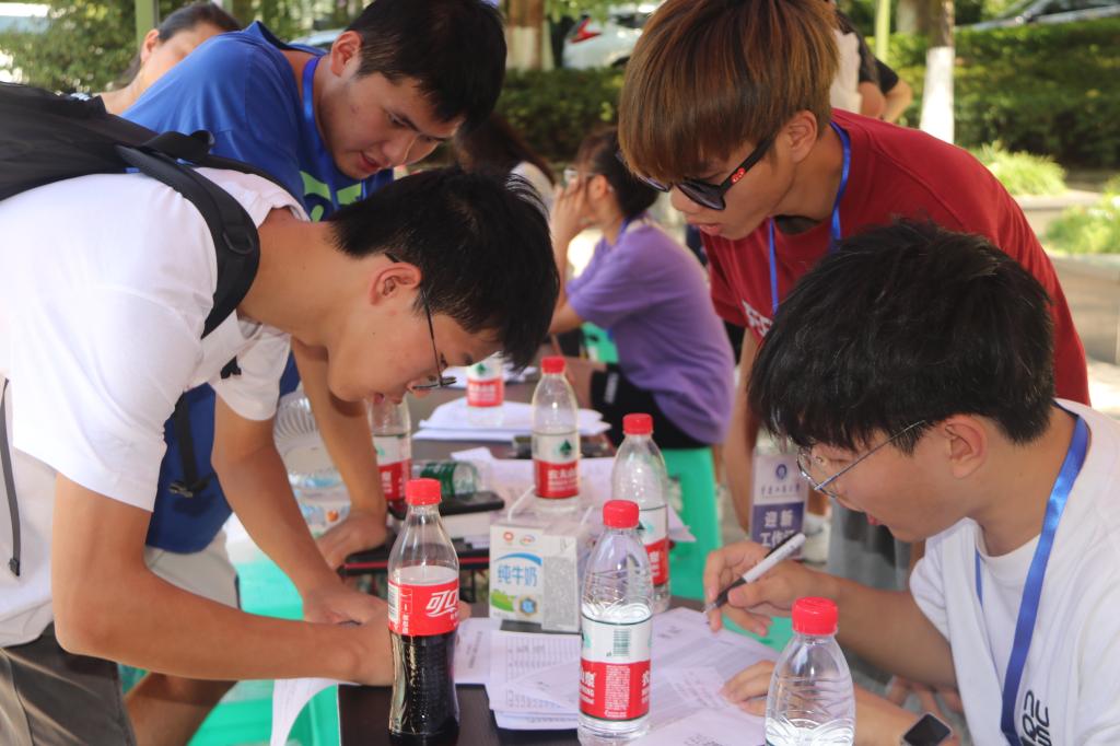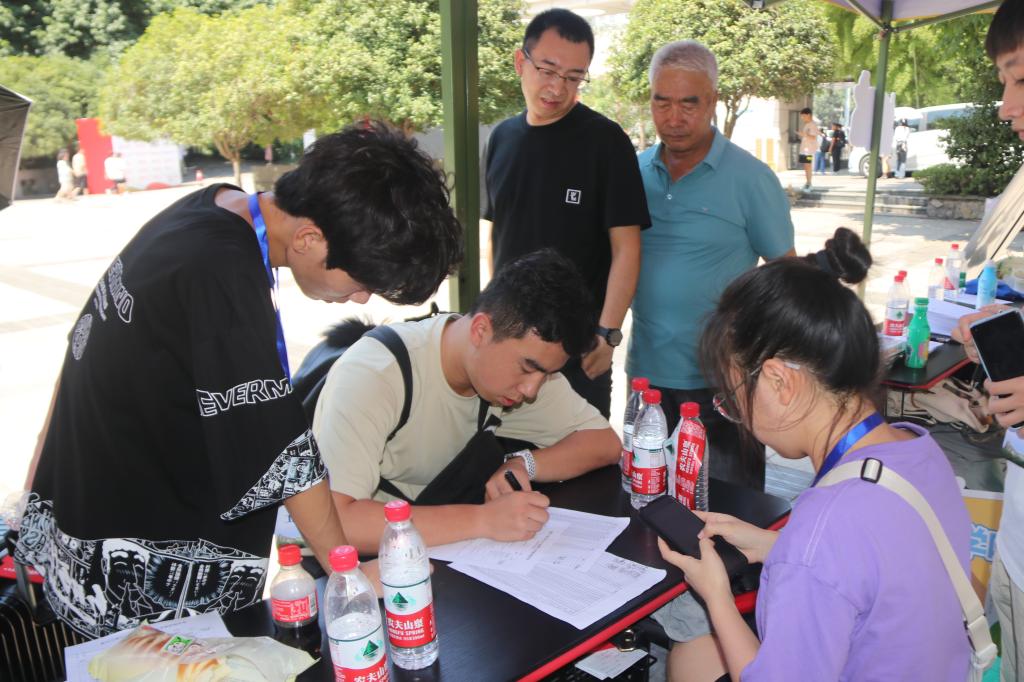 迎新现场热闹非凡,到处都是忙碌的身影。在报到处,工作人员认真核对新生报到信息,确保每位新生都能顺利完成报到手续。志愿者热情地迎接新生和他们的父母,为他们提供咨询服务,引导新生顺利完成整个报到流程。教室报到处新生信息收集工作紧锣密鼓、有条不紊。整个校园充满了热情洋溢的氛围,新生们充满期待地踏入这片充满智慧和梦想的殿堂。