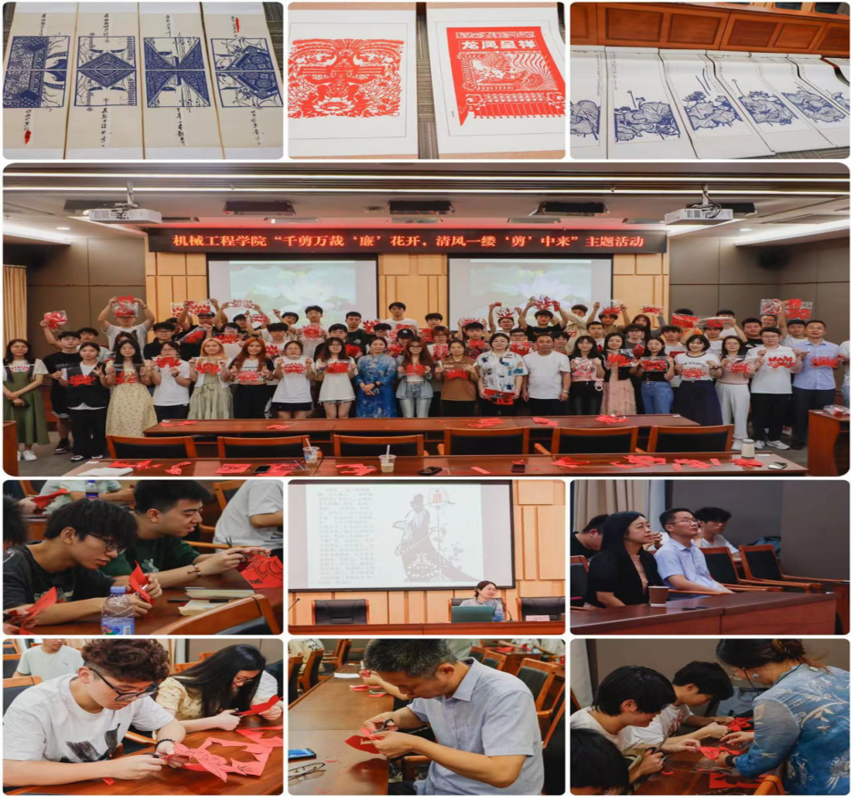 在随后的“巧手实践”环节,同学们在杨老师的指导下亲手体验剪纸创作。从折纸、画样到裁剪、修整,每一个步骤都需静心专注、一丝不苟。机械学子将工程制图中的精准思维与剪纸技艺相结合,在方寸纸张间感悟匠心理念,也将廉洁自律的价值观悄然内化于心。