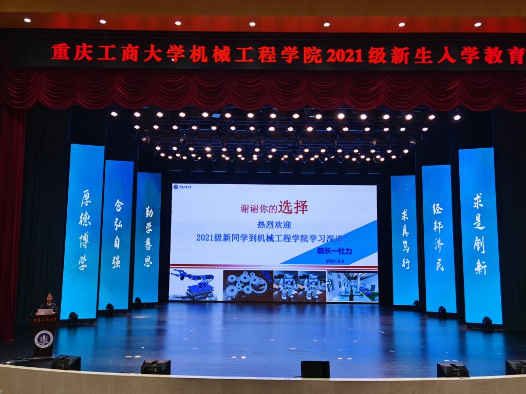 9日下午,我院在主校区千人剧场通过现场直播的方式开展了新生入学教育主会场活动。学院程亚副书记向新生致欢迎词,她表达了对新生们的祝福和期望,希望同学们在大学有精彩的生活,鼓励新生努力学习专业知识,为国家、民族的发展贡献自己的力量。工程训练中心王乐苏老师作为教师代表发言,他以“慢”寄语19级智能制造21级机械电子工程专业研究生屈亮同学作为新生代表发言,他表达了对学校和学院的热爱,希望尽快适应大学生活,认真学习,增长学识,提升认知,敢于拼搏与挑战。现场举行了隆重的入院仪式,学院欢迎21级的小萌新们加入机械工程的大家庭,增强了学生们的归属感和荣誉感。