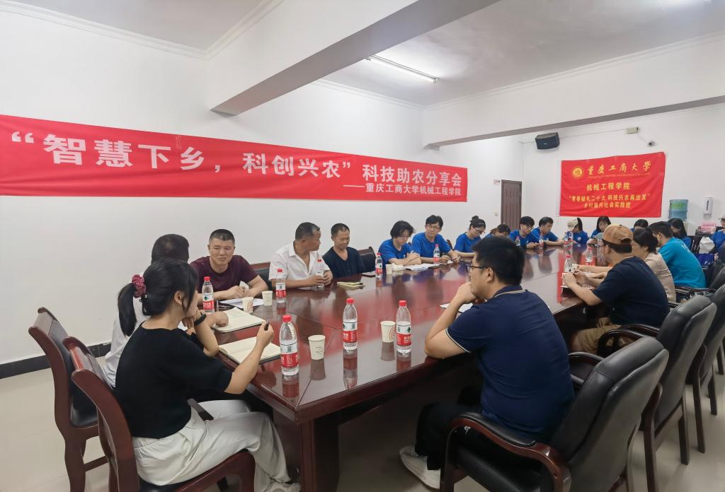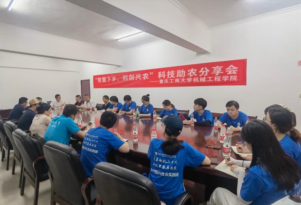 2022年7月13日,太阳集团tcy8722“青春献礼二十大,科技兴农再出发”乡村振兴社会实践团在长寿区石堰镇镇府会议室,和石堰镇产服中心,文化办,义和村、大溏村、普子村村支书一同参加了“智慧下乡,科创兴农”科技助农分享会,增进校地双方了解,明确产业需求,力争为乡村振兴办实事,办好事。石堰镇副镇长瞿小红、经发办主任蒋夕奎,实践团全体师生参加了会议。