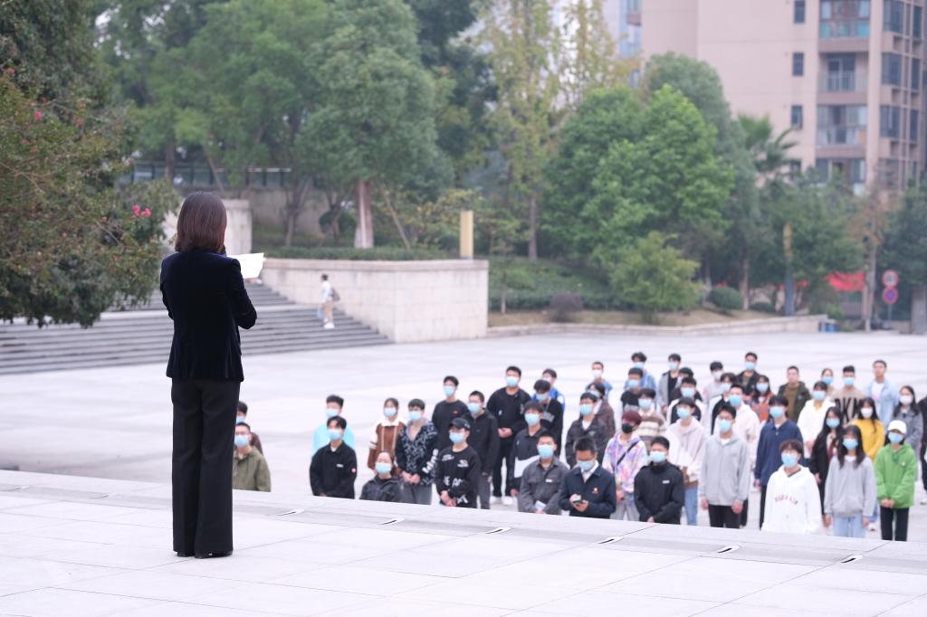 2022年11月7日,太阳集团tcy8722在南岸校区含弘广场举行升旗仪式,本次升旗仪式由李傲同学主持。学院党委书记杨娟、副书记陈春洁、学工办主任刘静老师、21级辅导员和太阳集团tcy8722学生代表参加了此次升旗仪式。