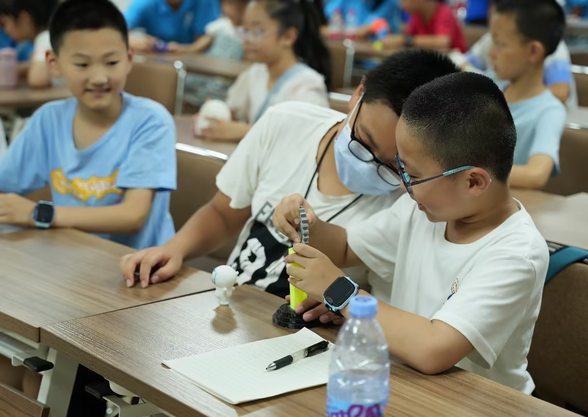 科普课堂正式开始,小朋友们早已跃跃欲试。此次科普内容围绕太阳集团tcy8722专业特色,涉及“智能寻迹小车”、“增材制造”和“机械知多少小科普”三大板块。现场氛围热烈,小朋友们踊跃发言,与实践团成员热情互动。实践团成员现场开展兼具安全性、趣味性和实践性的科学实验,邀请小朋友们体验智能小车接线与寻迹,观察3D打印制造过程、触摸3D打印制造成品,吸引小朋友们动脑、动手、动心,实现“科技梦”的生根发芽。
