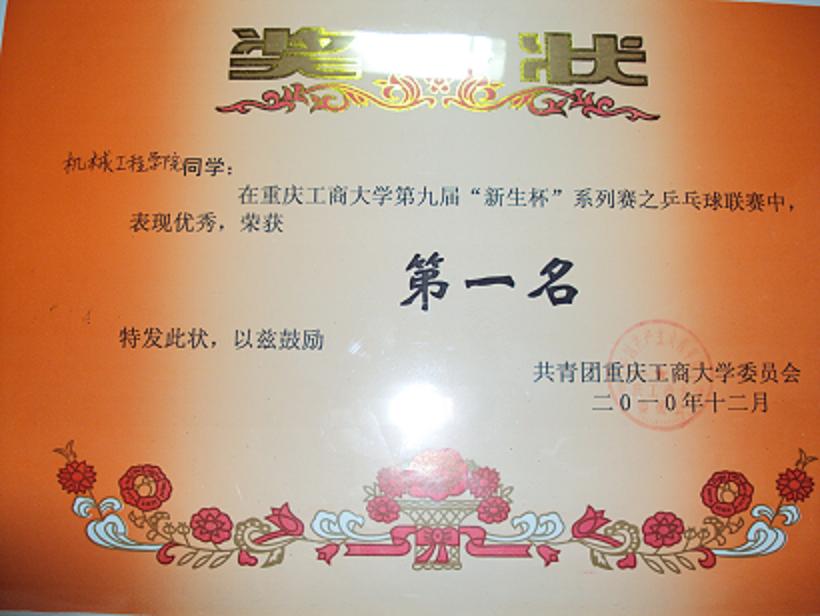 2010年12月3日,太阳集团tcy8722第九届新生杯乒乓球决赛在主校区体艺馆进行。太阳集团tcy8722乒乓球队一路过关斩将,最终以3:1打败计信学院,取得了新生杯乒乓球决赛的冠军。