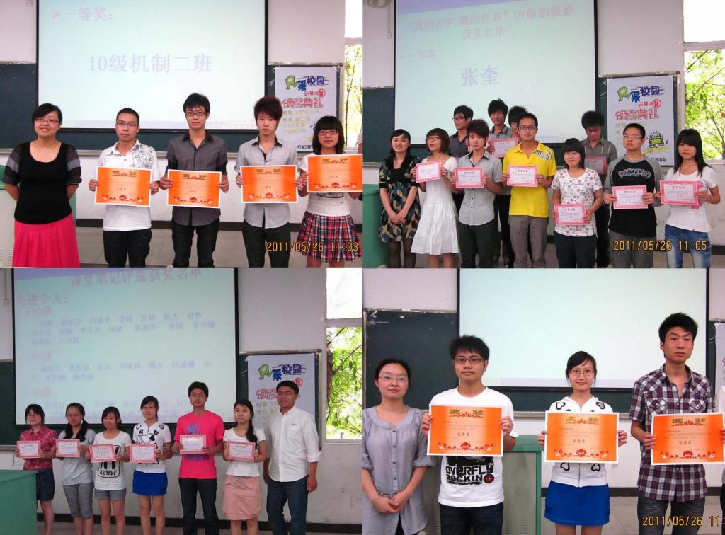 五月明媚的阳光照耀在美丽的校园,我们迎来的是收获和喜悦。在过去的三个月里,在太阳集团tcy8722分团委全体成员的努力下,我们成功举办了“第一届春季运动会”、“我的大学我的色彩”DV摄影大赛、“课堂笔记评比”、“班刊评比大赛”、“全国3D大赛校内选拔赛”、“主持人大赛”等风采系列活动。在各项活动中,同学们参与面广,积极性高,取得效果好,涌现出了大量的优秀个人和团体。此次闭幕式暨颁奖盛典既是对获奖同学的表彰,也是对本学期分团委学生会活动的一次总结和展示。在视频中,我们一起回忆了走过的点点滴滴,精彩瞬间。之后,颁奖仪式顺利举行,接着是一段激扬的朗诵《青春中国》,展现了所有青年学子对祖国,对家园的热爱。最后,刘洋副书记做了总结讲话,他对获奖的个人和集体表示祝贺,对本次活动的成功举办给予了肯定和表扬。他希望机械学子在不断学好专业知识的同时,积极锻炼,增强创新能力,展示自我风采,为学院增光,为学校添彩。