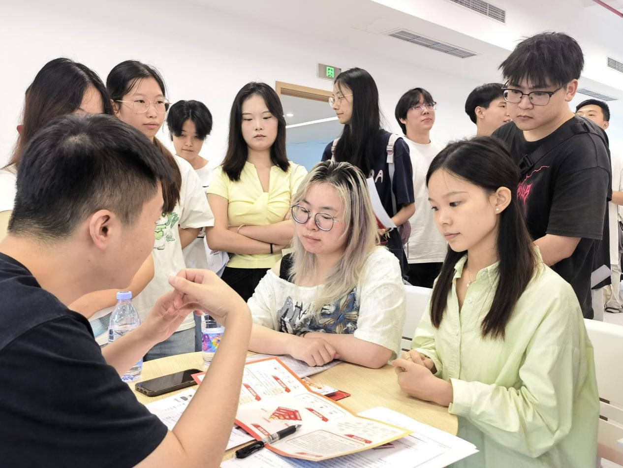 招聘会现场气氛热烈、秩序井然。毕业生们手持简历,主动与用人单位沟通交流、投递简历。学院领导与辅导员深入一线,详细了解企业招聘需求与学生应聘情况,现场指导毕业生准确定位、把握机遇。活动现场还专门设立了“引客入遂到安居”政策宣传点,为同学们系统解读了安居区在人才引进、落户安居、就业创业补贴等方面的优惠政策与配套服务。
